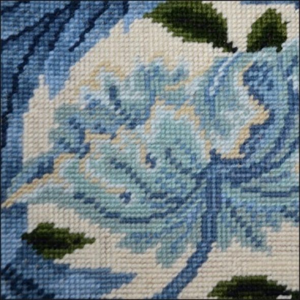 Gobelin Stickerei wird traditionell mit Stickwolle auf Stramin gestickt.