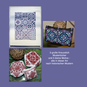 Vor Jahren konnte ich einen Nachlass von einem Designer, Herr Geisselhardt aus Konstanz, kaufen, der zwischen den Weltkriegen Kreuzstichmuster entworfen hat. Diese Muster habe ich in 2 Büchlein veröffentlicht.