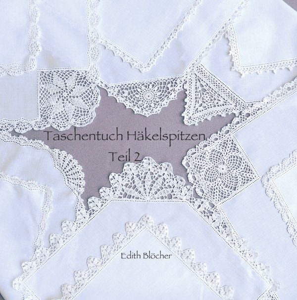 Vorlagenheft mit 14 neuen Häkelmuster für geraden und geboten Rand und dazu Anleitungen für gehäkelte Taschtuch Ecken.